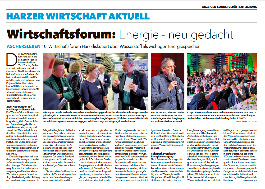 „Tourismus und Lebensraum“ lautet das Thema des vierten Wirtschaftsforums Harz, das im Herbst 2018 in Halberstadt stattfinden wird.